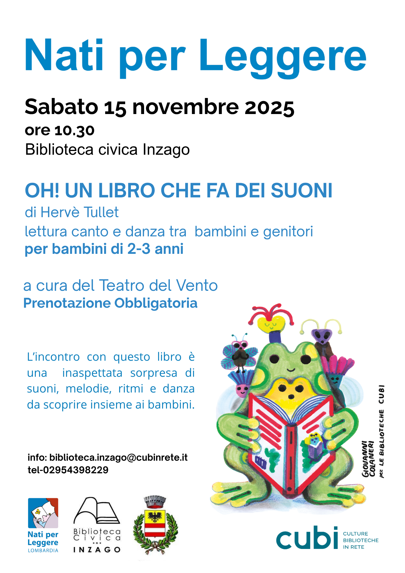 Info Biblioteca Civica tel 02954398229 o biblioteca.inzago@cubinrete.it