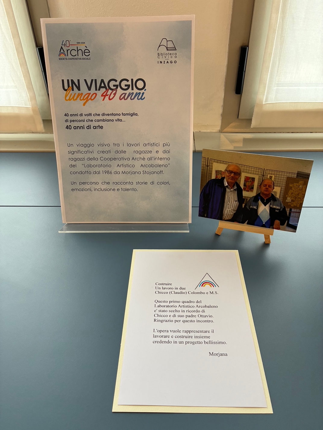 In occasione del 40esimo anniversario della Cooperativa Archè condividiamo in biblioteca i lavori artistici svolti, nel corso degli anni, nel "Laboratorio Artistico Arcobaleno", tenuto da Morjana Stojanoff.