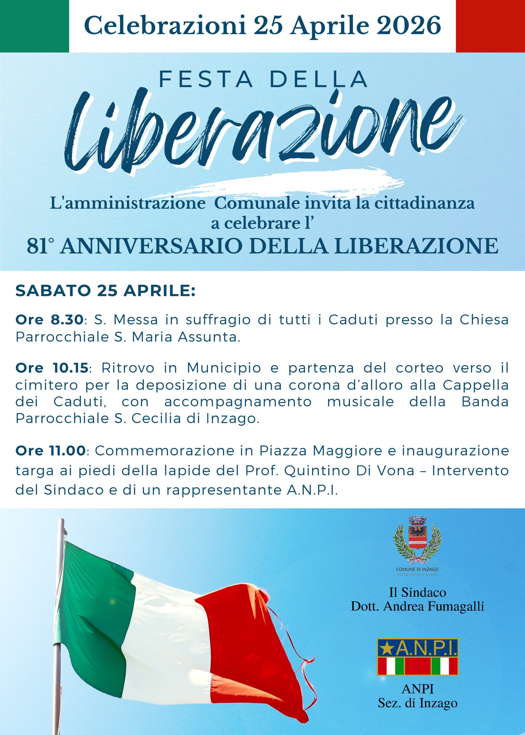 La sezione ANPI di Inzago invita tutti i cittadini a partecipare alla commemorazione del sacrificio di Quintino Di Vona nell’81° anniversario della sua fucilazione, avvenuta il 7 settembre 1944.